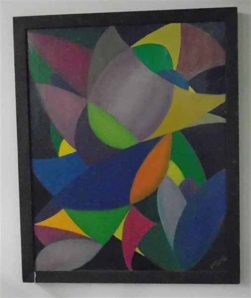 SoldX Large Framed Abstract Acrylic Painting by Y. OhashiFor your consideration is a beautiful, framed, acrylic painting, signed and dated on back by Y. Ohashi, 1955. In fair condition, but canvas may not have been primed properly and painting has cracks thSee Sold Price