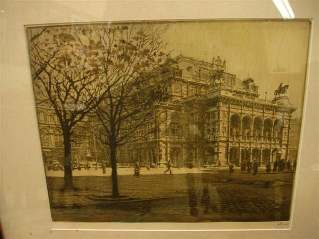 SoldLuigi Kasimir (Austrian-Hungarian, 1881-1962) VIENNA OPERA HOUSE, 1922VIENNA OPERA HOUSE Original Color Aquatint Etching by the artist Luigi Kasimir, 1922. Hand-signed in pencil Luigi Kasimir (lower center). Framed and matted under glass. Dimensions: framed: 25 in. x 29See Sold Price
