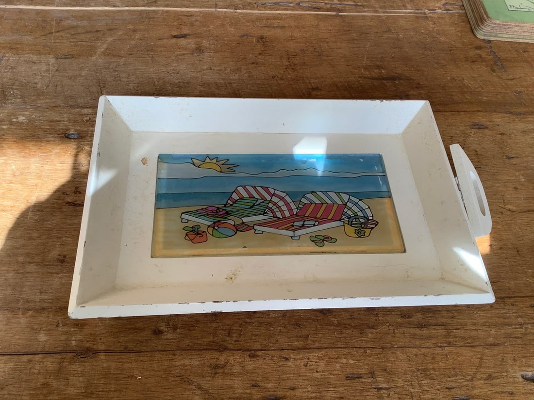 Framed beach theme tray(missing handle-10in.x15in.)