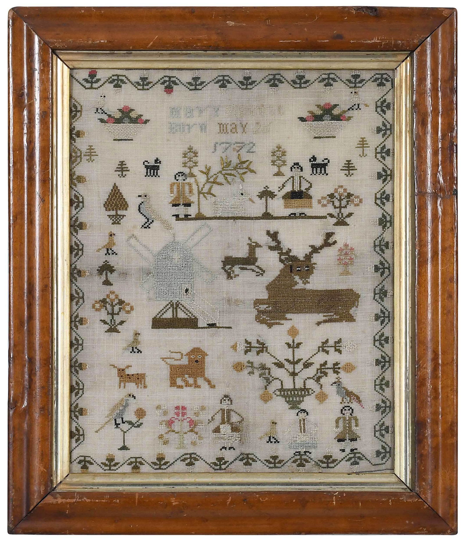 FINE AND RARE SUSAN TILTON (DANVILLE, VERMONT, B. 1813) NEEDLEWORK SAMPLER, DATED 1827. Frame, 17"h.2 days LeftAMERICAN FOLKSY NEEDLEWORK FARMYARD SCENE.2 days LeftAntique alphabet/numeric sampler w birds & flowers "Lydia Ann Wright" - overall framed size 26"x265 days LeftEarly 19thC sampler w Adam & Eve, birds, cat, lion, stag, tree, fruit, etc dated 1803 - overall5 days LeftAntique pictoral sampler w initials, verse, house, flowers, etc - overall framed size 25"x32"5 days LeftSALLY OSGOOD (ANDOVER, MASSACHUSETTS) NEEDLEWORK SAMPLER, DATED 1808. Frame, 20.5"h. 19.5"w.2 days LeftEarly 19thC alphabet, verse & pictoral sampler from Scituate, MA by "Isabella Litchfield born7 days LeftEarly pictoral sampler "Sikee Pharo 1732 Her Sampler" - overall framed size 22 3/4" x 9 1/2"7 days LeftMARGARET SWAIN (MASSACHUSETTS) NEEDLEWORK MOURNING MEMORIAL SAMPLER FOR THOMAS A. SWAIN, DATED 1810.2 days LeftMERIBAH ELLIS (AMERICAN) FAMILY RECORD PETIT POINT SAMPLER.2 days LeftTHREE AMERICAN PATRIOTIC BERLIN SAMPLERS. Largest, 14"h. 26.5"w.2 days LeftMARTHA LOMAS (AMERICAN) NEEDLEWORK SAMPLER, DATED 1853. Frame, 28.75"h. 28"w.2 days LeftSARAH SHAW (ENGLISH, B. 1837) ADAM AND EVE NEEDLEWORK SAMPLER, DATED 1848.2 days LeftELIZA ELDERD (AMERICAN) NEEDLEWORK SAMPLER, DATED 1806.2 days Left19thC alphabet & pictoral sampler Mary Dalbarns dated 1820 - overall framed size 19"x11 1/4"Mar 24, 2026Early 19thC sampler from Scituate (MA) by Jan Olie(?) born 1794 done in 1804 at 10 years old -7 days Left