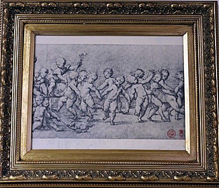 Sold16th C Italian Framed Engraving "Rape of Sabines"An engraving black and white panel depiction of the "Rape of the Sabines" in the 16th century style. Now with shrinkage into strips and with losses to the image. Framed by an important inset and LapisSee Sold Price