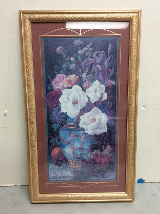 Framed floral artwork(18in.x31in.)