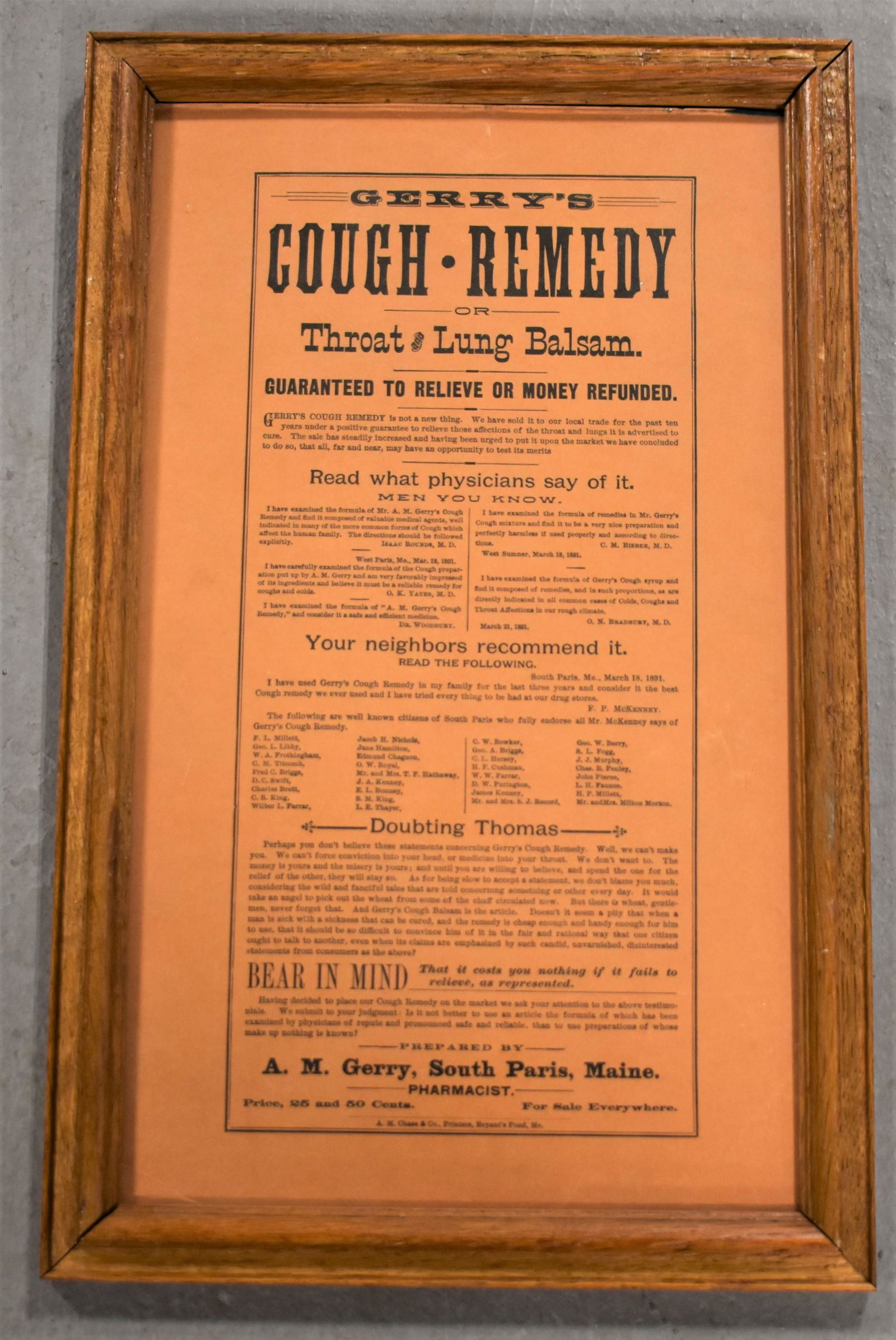 Framed Gerrys Cough Remedy Advertisements