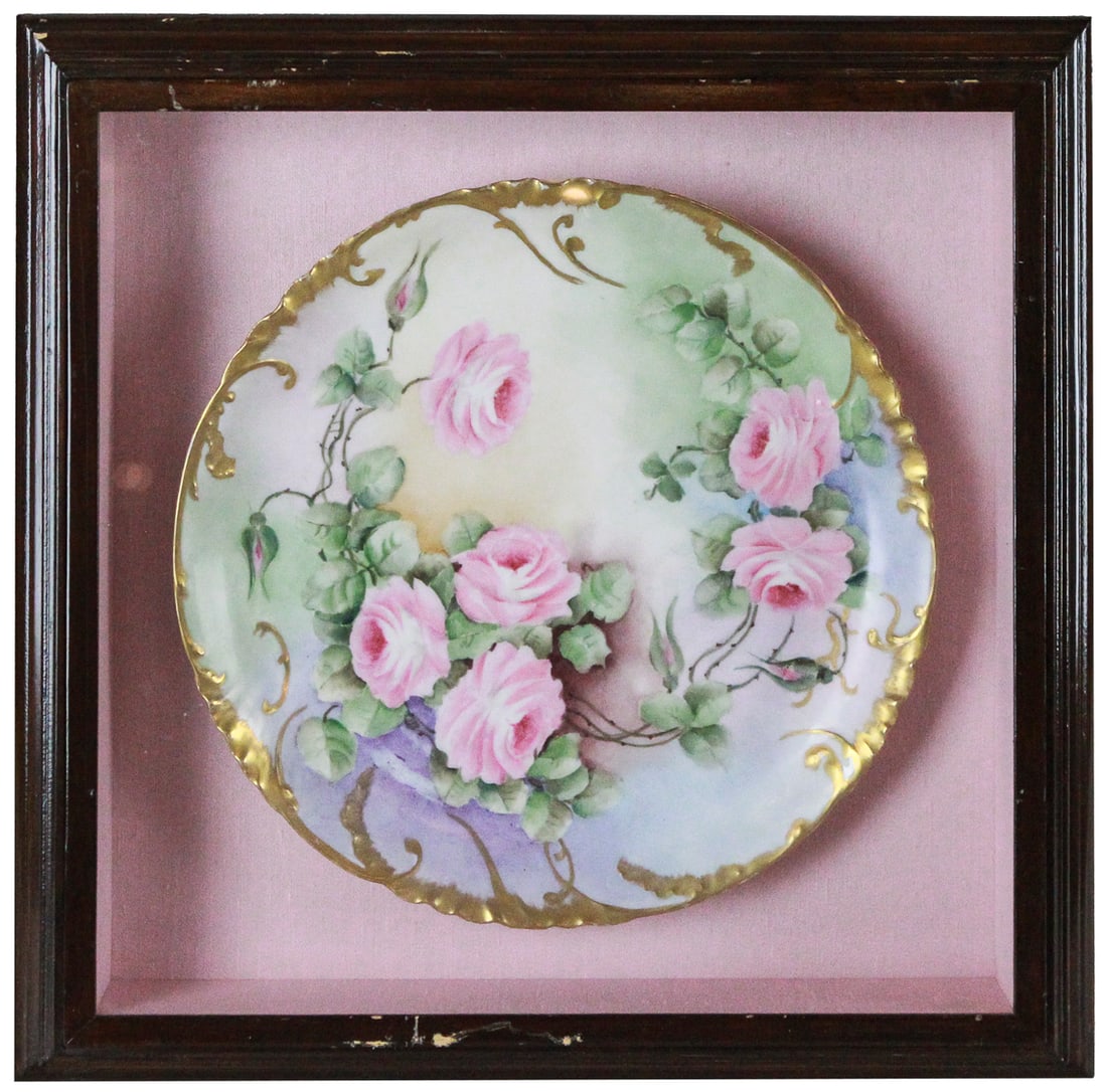 Framed Gold Painted Floral Ceramic Plate