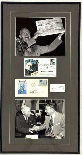 Framed Harry Truman & Thomas Dewey Signed Collage