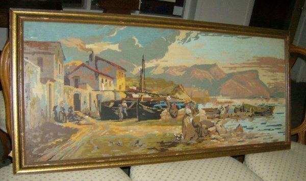 Framed needlepoint 23"h, 49"l