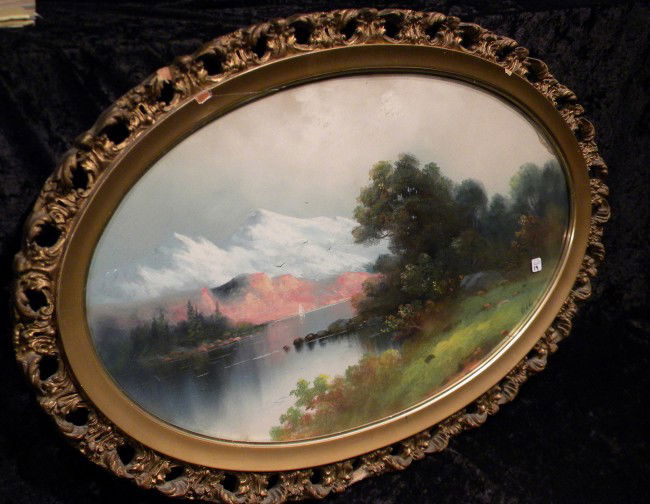 Gold Framed Mountain/Lake Pastel - John W. Clarke 1892