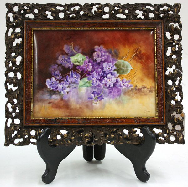 Framed porcelain plaque hand painted