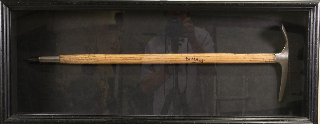FRAMED REPLICA EDMUND HILLARY SIGNED ICE AXE