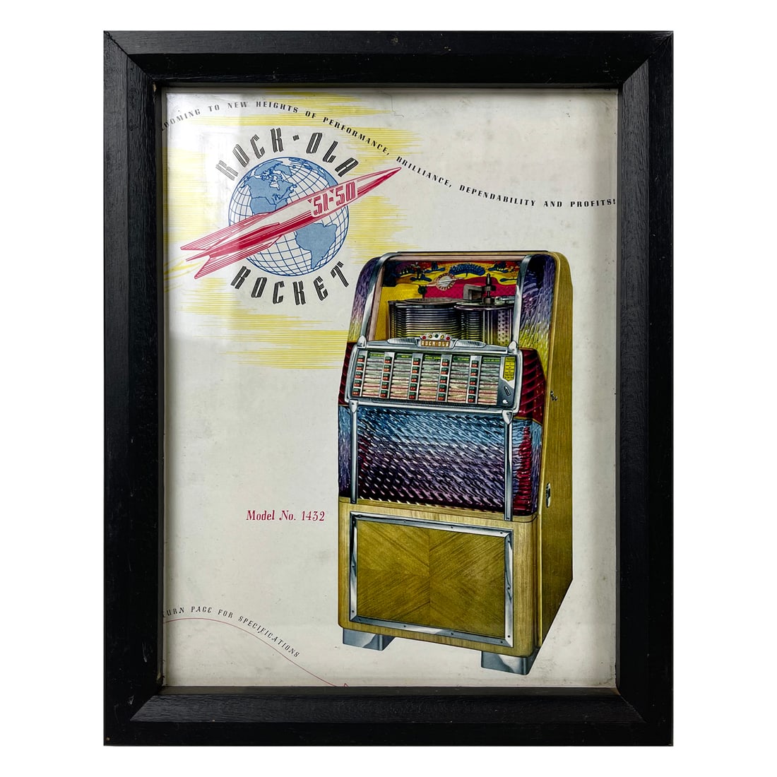 Framed Rock-Ola 1432 "Rocket" Jukebox Advertisement
