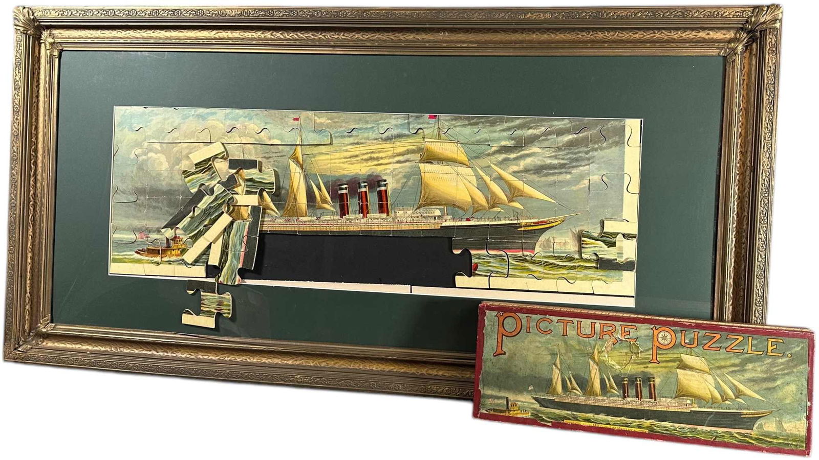FRAMED SAILING STEAMSHIP PUZZLE W/ BOX