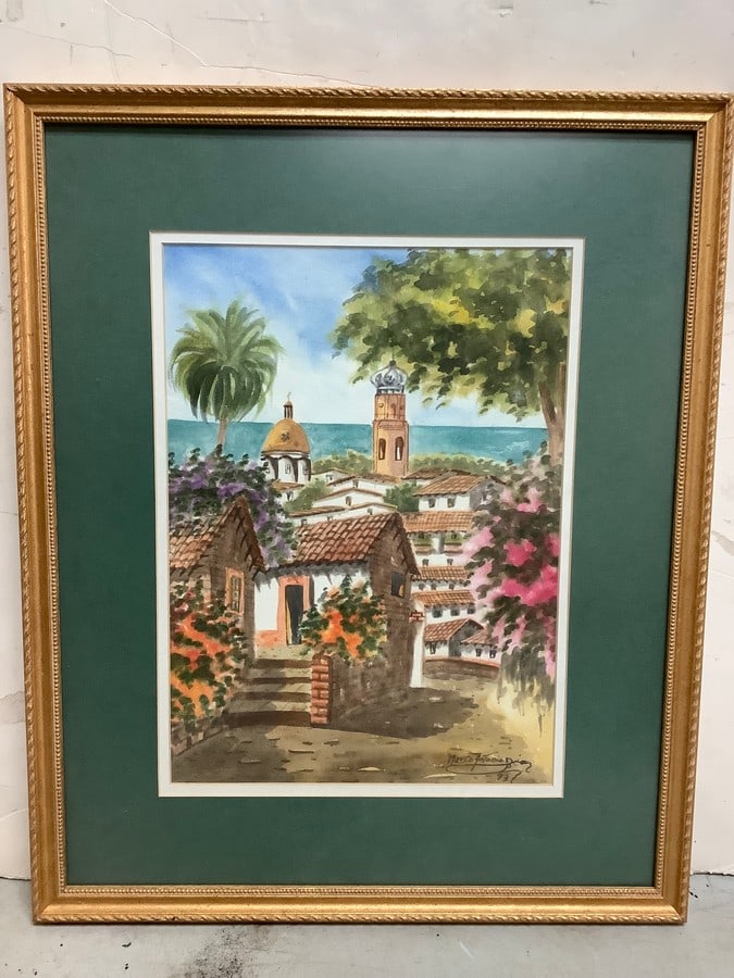 Framed signed 1993 artwork 16x19.5
