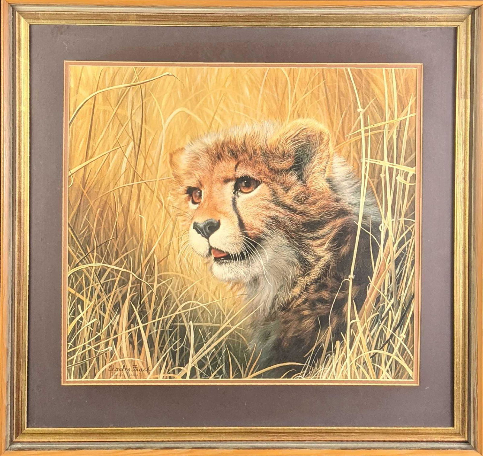Framed Signed Charles Frace Cheetah Kitten Print