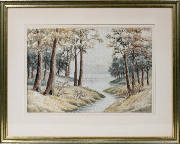 FRAMED SILK NEEDLEWORK, 12" X 17"