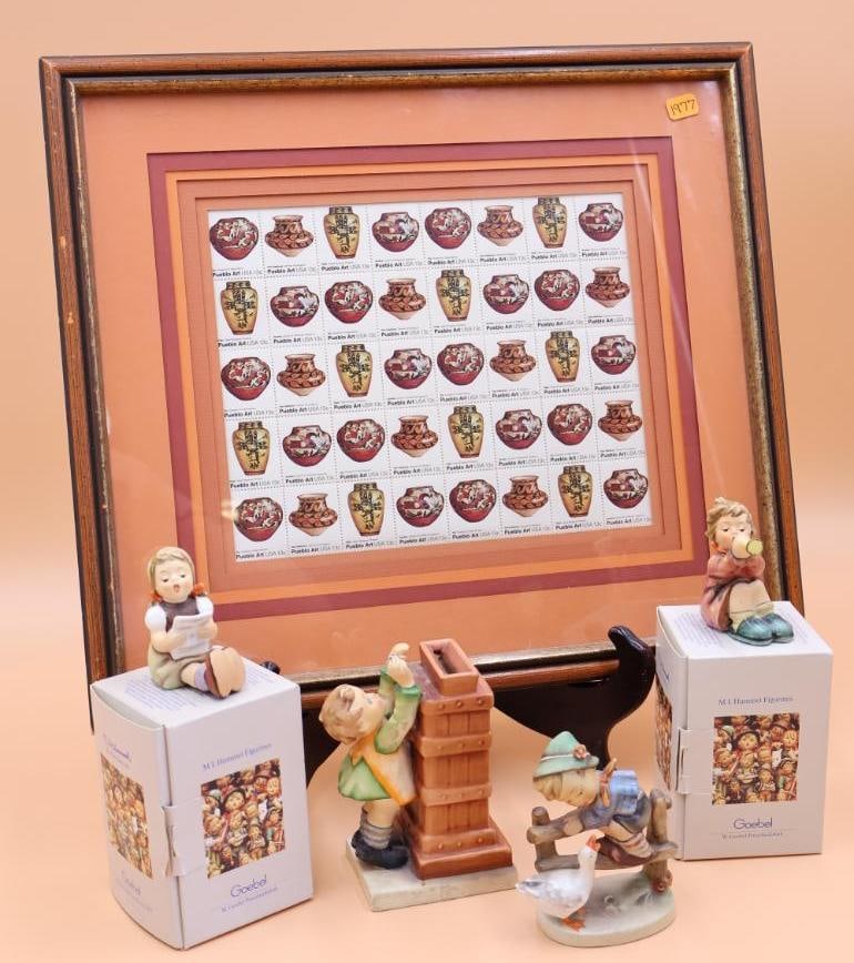Framed Stamps and Hummel Statues with Boxes