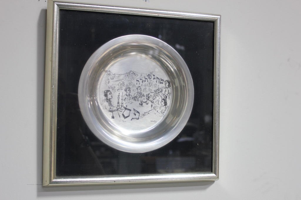 Framed Sterling Silver Passover Plate, Chaim Gross