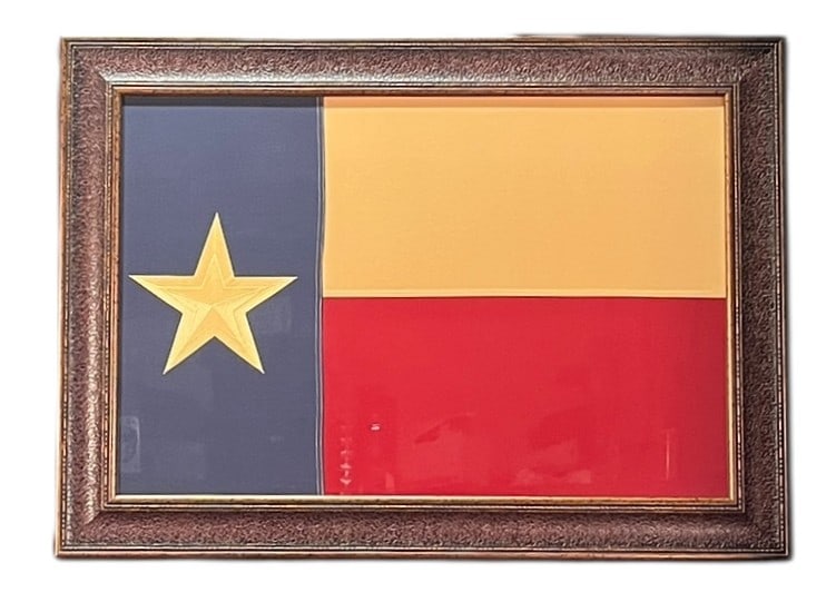 FRAMED STITCHED CLOTH TEXAS FLAG