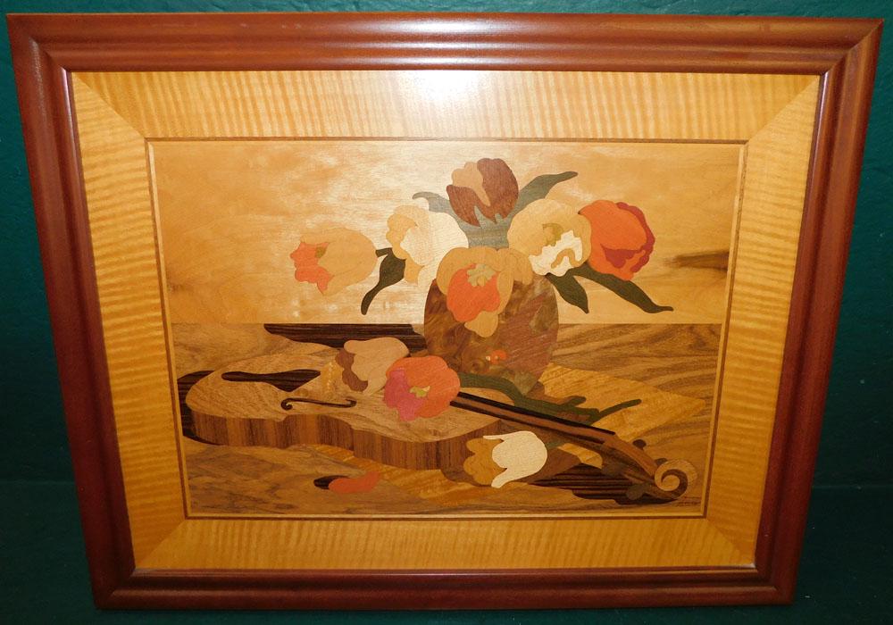 Framed Tiger Maple & Inlay Wood Panel
