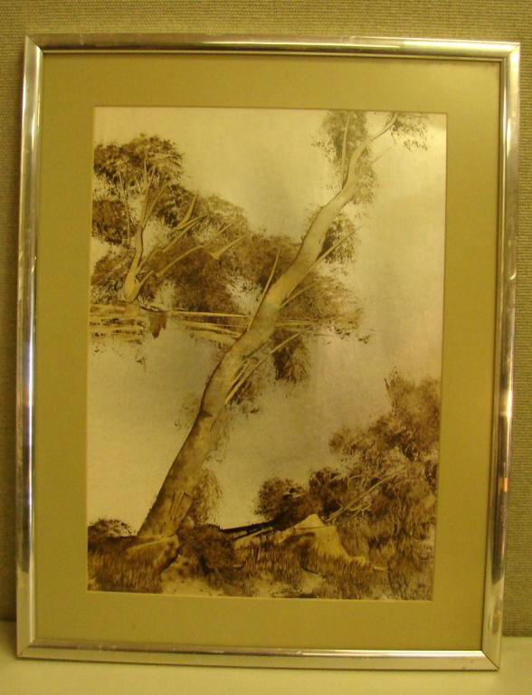 Framed under Glass "Trees on Silver Background"