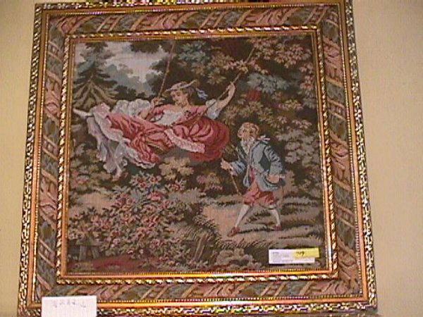 FRAMED VICTORIAN TAPESTRY - LOVERS SWING