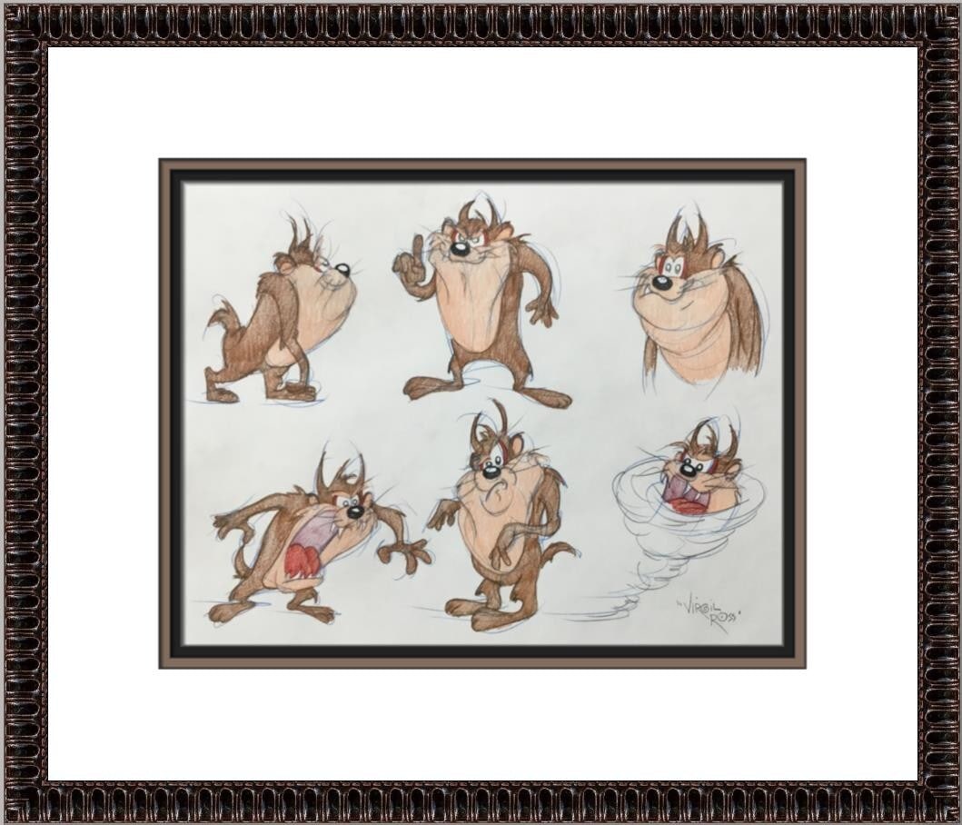 Framed Virgil Ross Signed Tazmanian Devil Model Sheet Drawing
