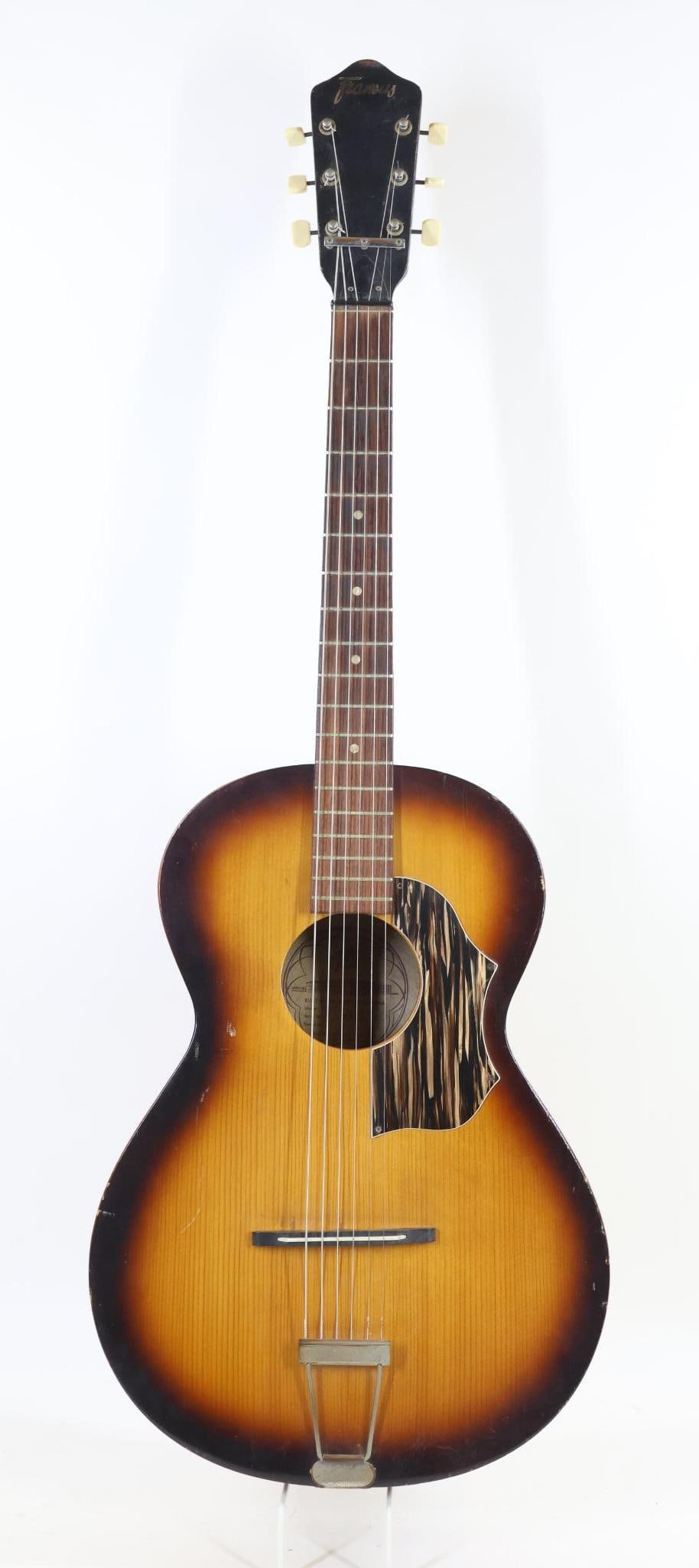 SoldFramus Acoustic GuitarModel number Gaucho 5 / 194. Serial number 44032. Overall 40-1/4" long. Body only 18-3/4" long. LR / BASee Sold Price