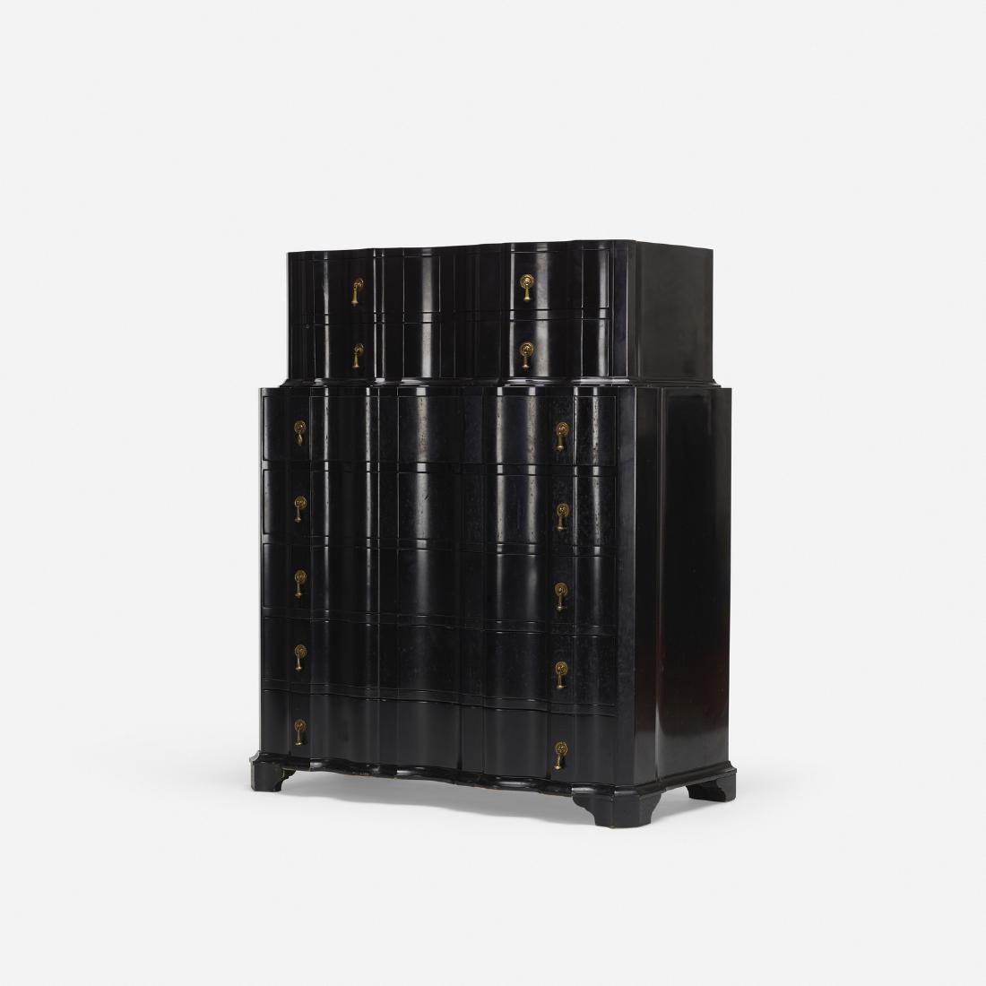 SoldCARLO BUGATTI (Milan, Italy, 1856-1940, Molsheim, France). Cabinet, ca. 1900. In ebonised walnutCARLO BUGATTI (Milan, Italy, 1856-1940, Molsheim, France). Cabinet, ca. 1900. In ebonised walnut wood, inlaid with pewter, copper and vellum. Signed. There are slight cracks at some angles, as well asSee Sold Price