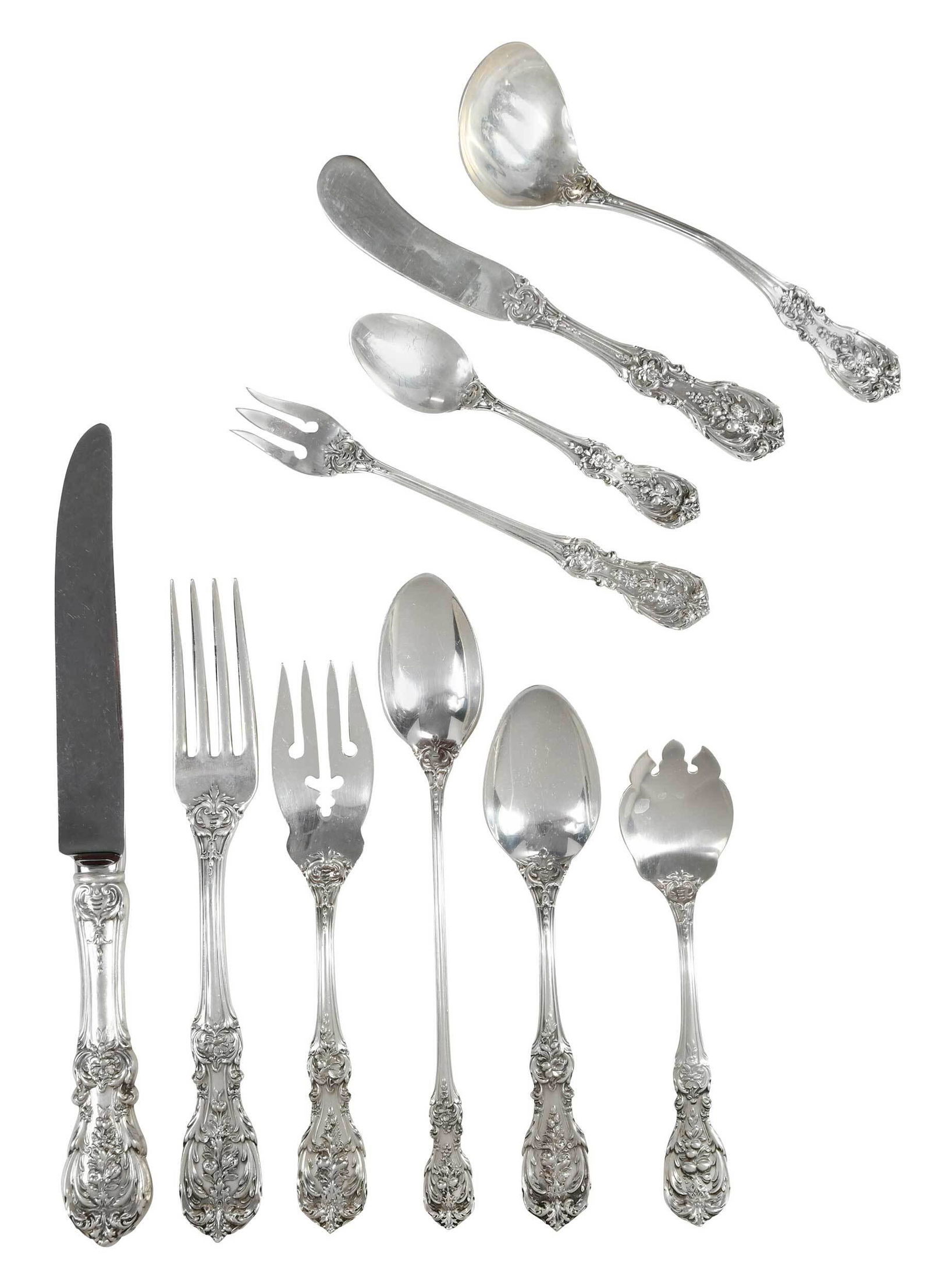 (248 pcs) Christofle Malmason Sterling Flatware SetMar 24, 2026A George V Sterling Flatware Service6 days LeftFRANCIS HIGGINS STERLING SILVER UTENSILS LOT OF 6Mar 28, 2026(86 pc) Gorham King Edward Sterling Flatware SetMar 24, 2026Tiffany Sterling Flatware Hamilton Pattern6 days Left(72pcs) Reed & Barton Francis I Sterling Flatware SetMar 24, 2026An Assembled American Silver Flatware Service12 hrs LeftGorham Strasbourg Sterling Silver Flatware ServiceMar 24, 2026(87pc) International Prelude Sterling Silver Flatware SetMar 24, 2026Reed and Barton "Francis I" Sterling Silver Flatware Service for 8 With Extras2 days LeftReed and Barton "Francis I" Sterling Silver Flatware Service for 7 With Extras2 days Left(84pc) Reed & Barton Georgian Rose Sterling FlatwareMar 24, 2026(54 pc) Wallace Rose Point Sterling Silver Flatware SetMar 24, 2026International Joan of Arc Sterling Silver FlatwareMar 24, 2026An American Silver Flatware Service12 hrs Left(46pc) Sovereign Hispania by Gorham Sterling Flatware SetMar 24, 2026