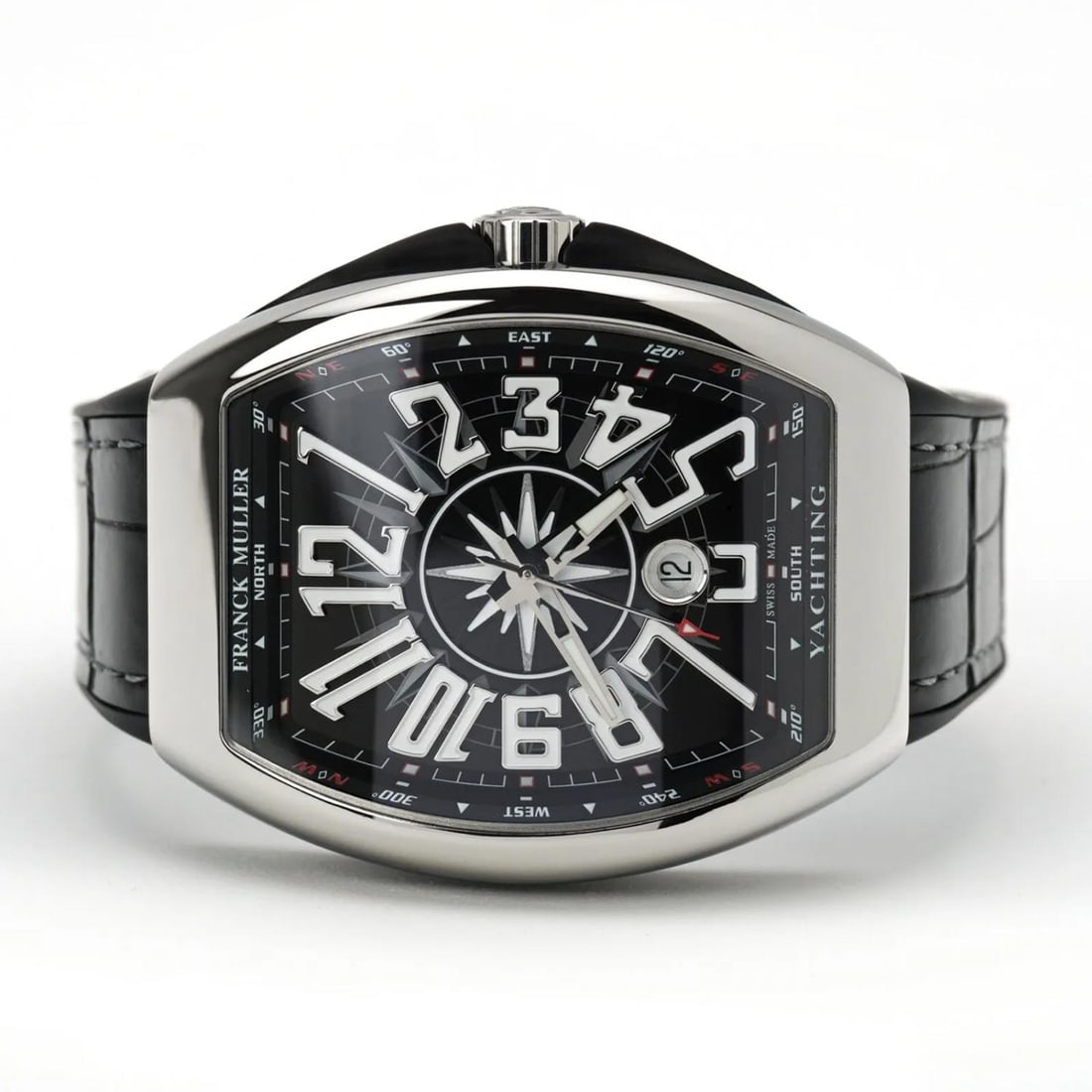 SoldCURRENT MODEL: FRANCK MULLER - a gentleman's VanguardCURRENT MODEL: FRANCK MULLER - a gentleman's Vanguard wrist watch. Stainless steel case. Reference V45SCDT, serial 1053. Automatic movement with quick date set. White dial with Arabic numeral hour marSee Sold Price