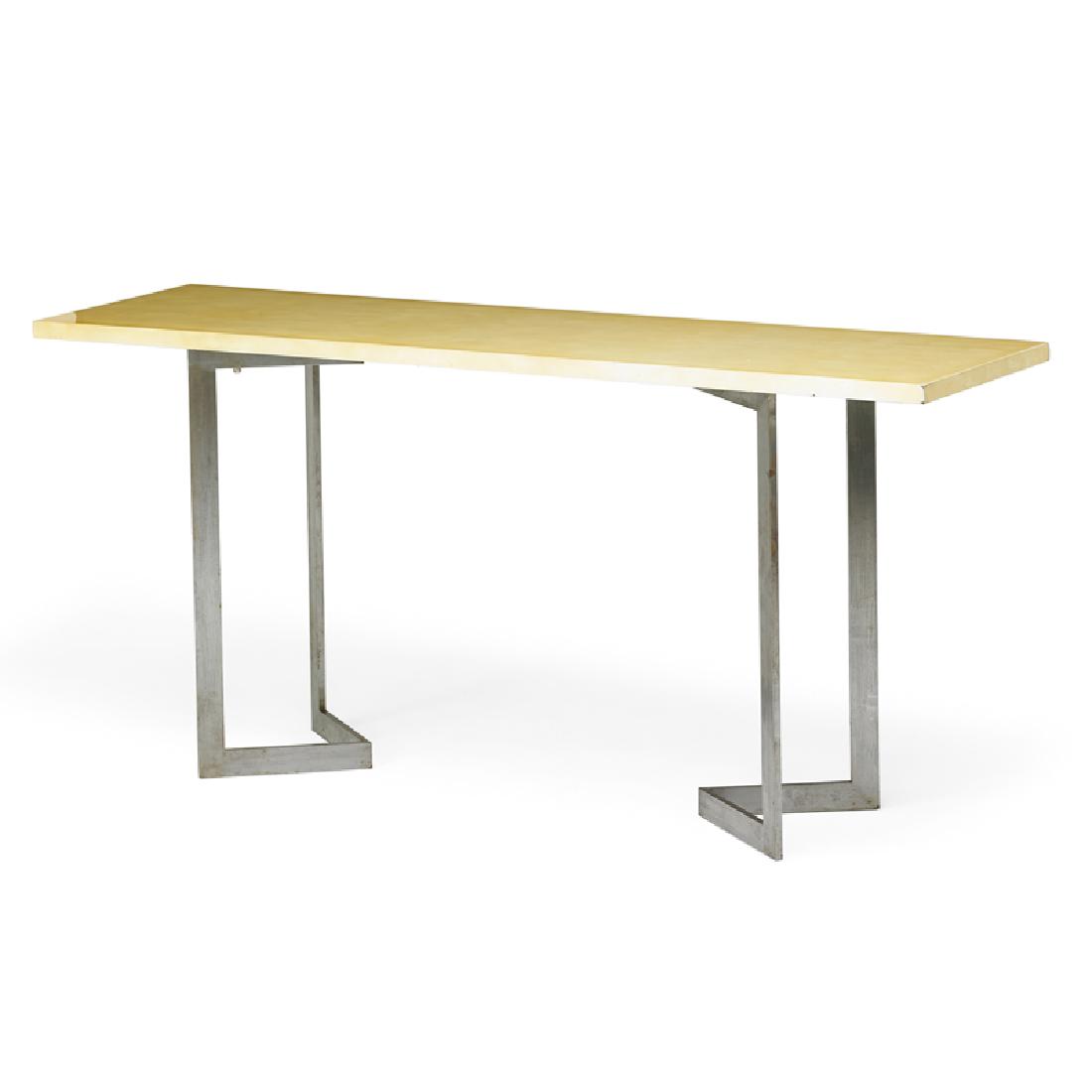 Maison Jansen Style, Steel, Brass, Glass, Console Table, France, 1970sA RARE IRON CONSOLE TABLE HAVING A MICA TOP IN THE MANNER OF JEAN-MICHEL FRANK.Feb 25, 2026IRON CONSOLE TABLE IN THE MANNER OF JEAN-MICHEL FRANK HAVING A MICA COVERED TOP.Feb 25, 2026Loftus Console Table by John-Richard Tiza Gesso Finish7 days LeftMichael Heltzer Metal and Cast Stone Console TableFeb 25, 2026Paul Poiret, Console tableFeb 26, 2026Angelo Mangiarotti, Inca console tableFeb 26, 2026Cordell Console Table (Marble)Feb 25, 2026PARCHMENT COVERED CONSOLE TABLE IN THE MANNER OF JEAN-MICHEL FRANK HAVING A WATERFALL EDGE,Feb 24, 2026Traditional Leather Wrapped Metal Base Console Table 60 x 18 x 31Mar 03, 2026Post Modern, Europe Console tableVintage Boho EJ Victor Lindie Console Table White Wood624 Lots AwayIron Console TableFeb 26, 2026Woodbridge Madeline Console Table Silver Leaf Demilune 19th C French Style3 days LeftPaul Evans Mid-Century Modern Chrome Dining Table with Extensions7 days LeftHoward Meister, Console tableFeb 26, 2026