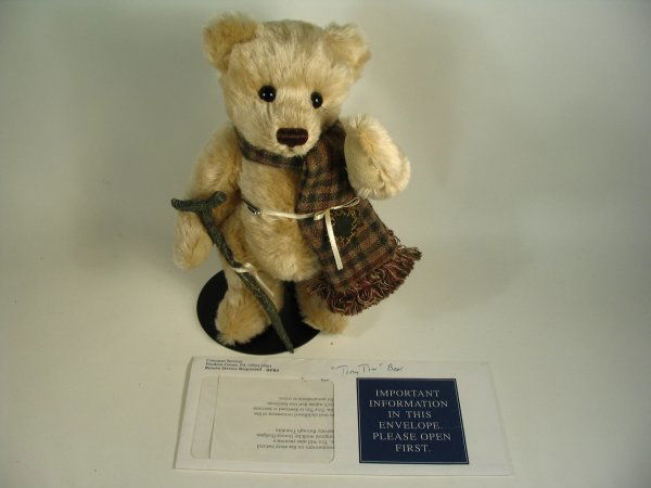 SoldFranklin Mint Heirloom Bears Teddy Bear, BrideMohair, glass eyes, sewn nose. Wearing an elegant wedding dress with pink accents. Original tag attached and display stand included. Dimensions: 9"H Manufacturer: Franklin Mint Heirloom Bears CountrySee Sold Price