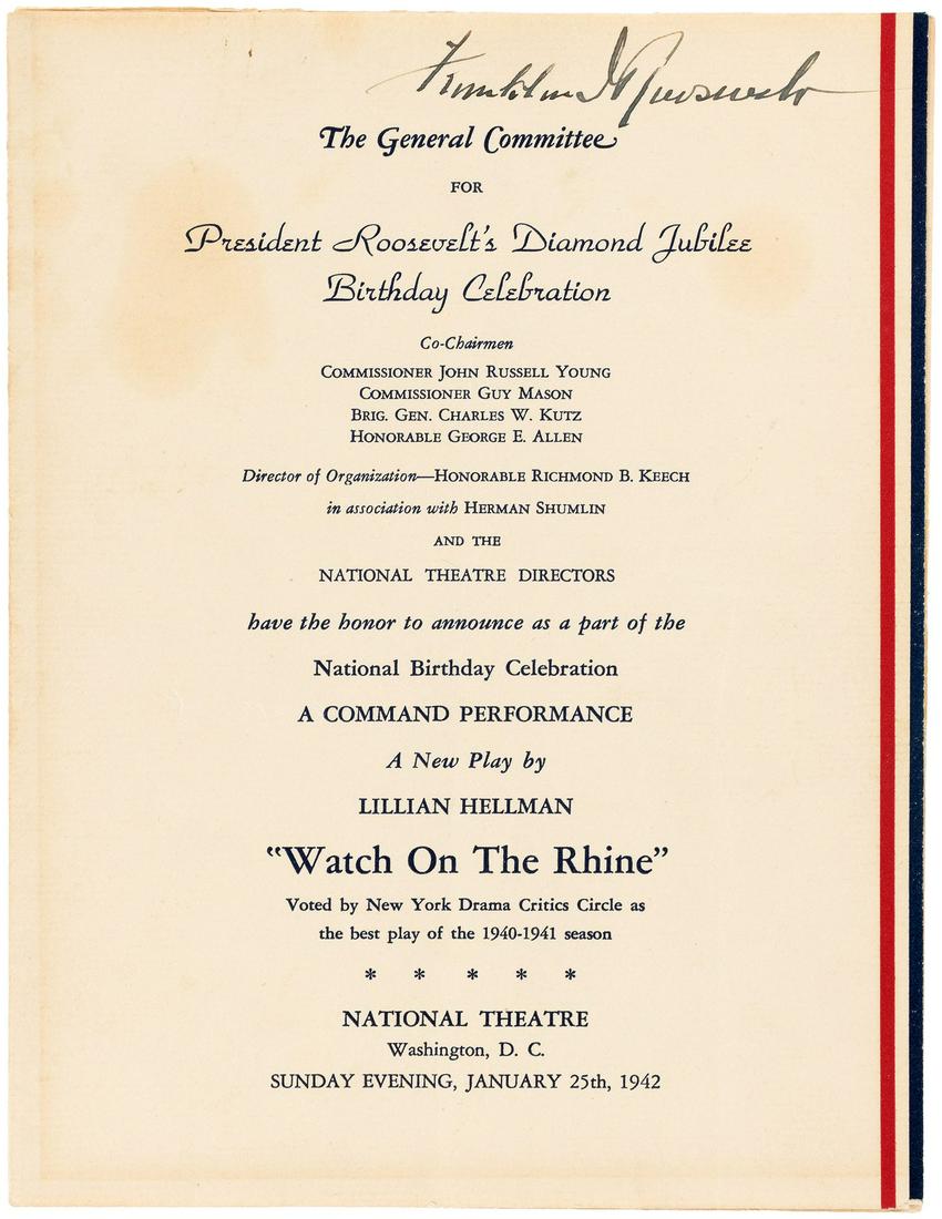 FRANKLIN ROOSEVELT SIGNED 1942 BIRTHDAY BALL PROGRAM.