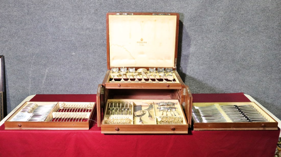 A composed lot of eight various antique French silver-plated CHRISTOFLE cutlery sets497 Lots AwaySilver Plated Community Plate Flat Ware Inc. Mother of Pearl Handles & Serving TrayMar 16, 2026Reed and Barton Dancing Flowers Sterling Silver Flatware - Set of 55Jul 04, 2025Reed and Barton Dancing Flowers Sterling Silver Flatware - Set of 55Jul 20, 2025Reed and Barton Dancing Flowers Sterling Silver Flatware - Set of 55Jul 10, 2025Reed and Barton Dancing Flowers Sterling Silver Flatware - Set of 55Jul 18, 2025Reed and Barton Dancing Flowers Sterling Silver Flatware - Set of 55Jun 29, 2025Reed and Barton Dancing Flowers Sterling Silver Flatware - Set of 55Jun 25, 2025Reed and Barton Dancing Flowers Sterling Silver Flatware - Set of 55Jul 11, 2025Alvin Chapel Bells Sterling Silver Flatware Service Dinner Set of 55 Pieces with Wooden Case10 hrs LeftElegante Sterling Silver Flatware Set by Reed & Barton 245 PiecesMar 04, 2026Silver Plated Flatware Set in Wooden CaseMar 05, 2026International "Enchantress" Sterling Silver Flatware SetJul 06, 2025International "Enchantress" Sterling Silver Flatware SetJul 17, 2025International "Enchantress" Sterling Silver Flatware SetJun 30, 2025International "Enchantress" Sterling Silver Flatware SetJul 09, 2025