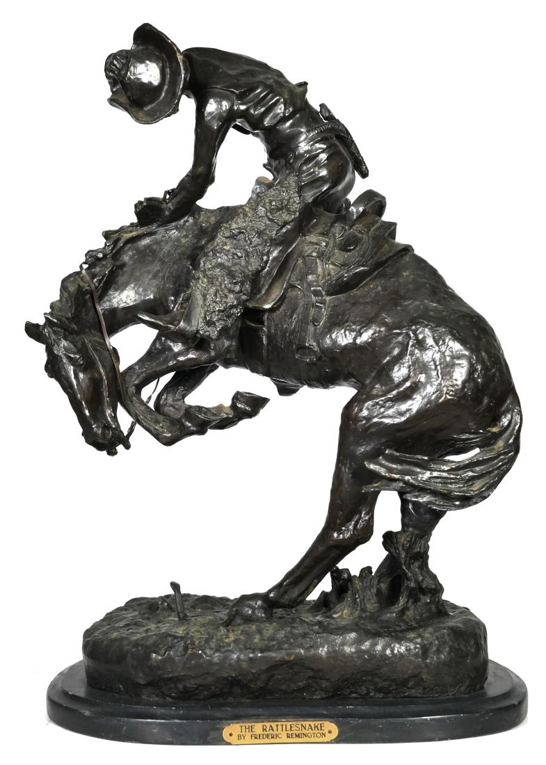 Frederic Remington- Bronze on marble base "The Rattlesnake"2 days LeftFrederic Remington "Rattlesnake" Bronze Sculpture6 days LeftAfter Frederic Remington "The Rattlesnake" Bronze Sculpture6 days Left"RATTLESNAKE" BRONZE AFTER FREDERIC REMINGTONMar 06, 2026After Frederic Remington "Rattlesnake" Large Bronze Sculpture6 days Left"NORTHERNER" BRONZE AFTER FREDERIC REMINGTONMar 06, 2026AFTER FREDERIC REMINGTON (American, 1861-1909)3 days LeftAfter Frederic Remington (American, 1861-1909), "Outlaw"Mar 14, 2026After Frederic S. Remington (American, 1861-1909), Cheyenne4 days LeftAfter Frederic Remington (American, 1861-1909), "The Broncho Buster"Mar 14, 2026Frederic Remington Cowboy on Horse Art Deco Western Bronze Sculpture - 9" x 10"Mar 18, 2026Frederic Remington 'Outlaw' Bronze Statue by ASBMar 06, 2026After FREDERIC REMINGTON (1861-1909) The Mountain Man, Bronze SculptureMar 08, 2026After Frederic S. Remington, Bronze Mountain ManMar 07, 2026Frederic Remington Bronze Sculpture Mountain Man on Marble Base 20th Century7 days LeftFrederic Remington Cowboy Bronze Statue Sculpture Country Western Art 17" x 21"Mar 18, 2026