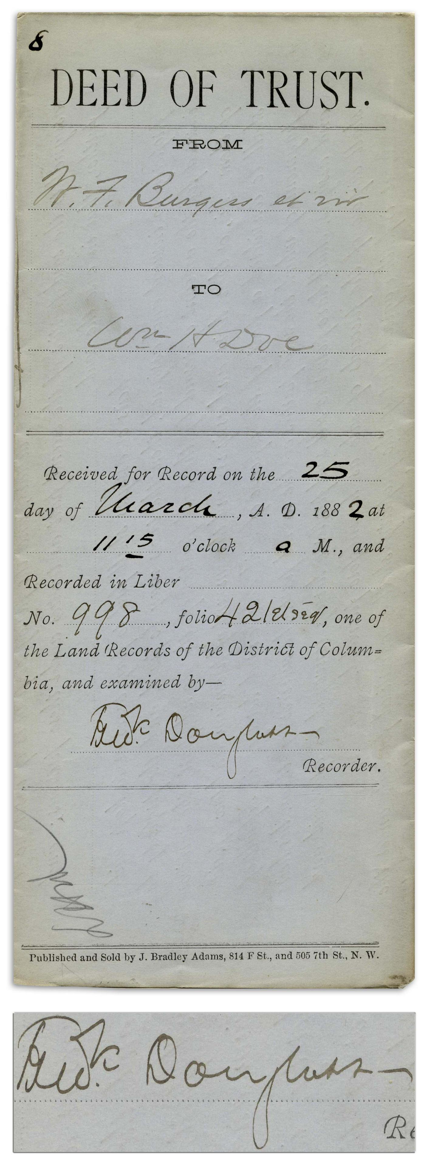 Frederick Douglass Document Signed