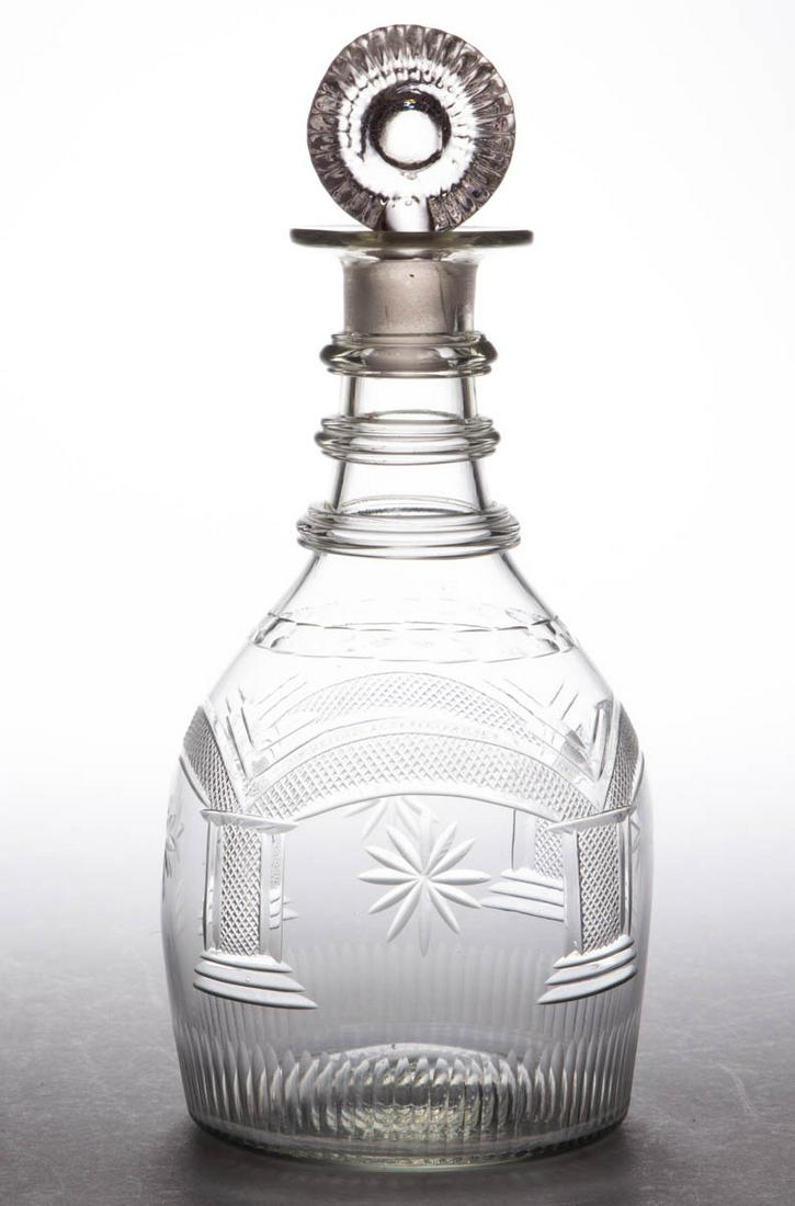 FREE-BLOWN AND CUT MASONIC QUART DECANTER