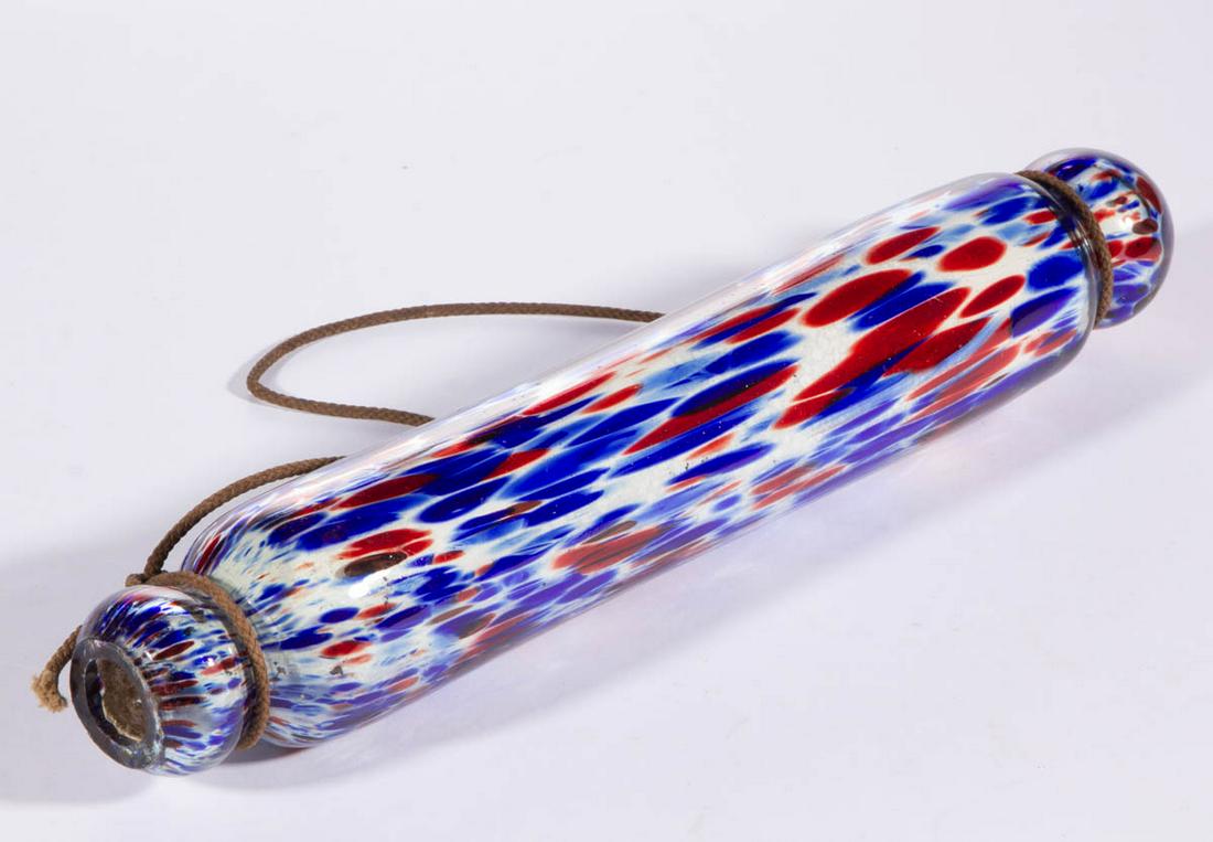 FREE-BLOWN SPATTER-DECORATED ROLLING PIN
