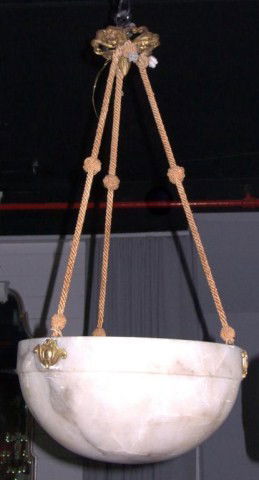 French Alabaster Hanging Light * Circa 1930, rou