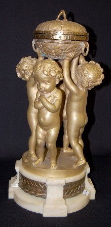 A 20th Century French table clock with three Cherubs holding a sphere aloftWorld of Antiques, Inc.4(77)$5002 days Left