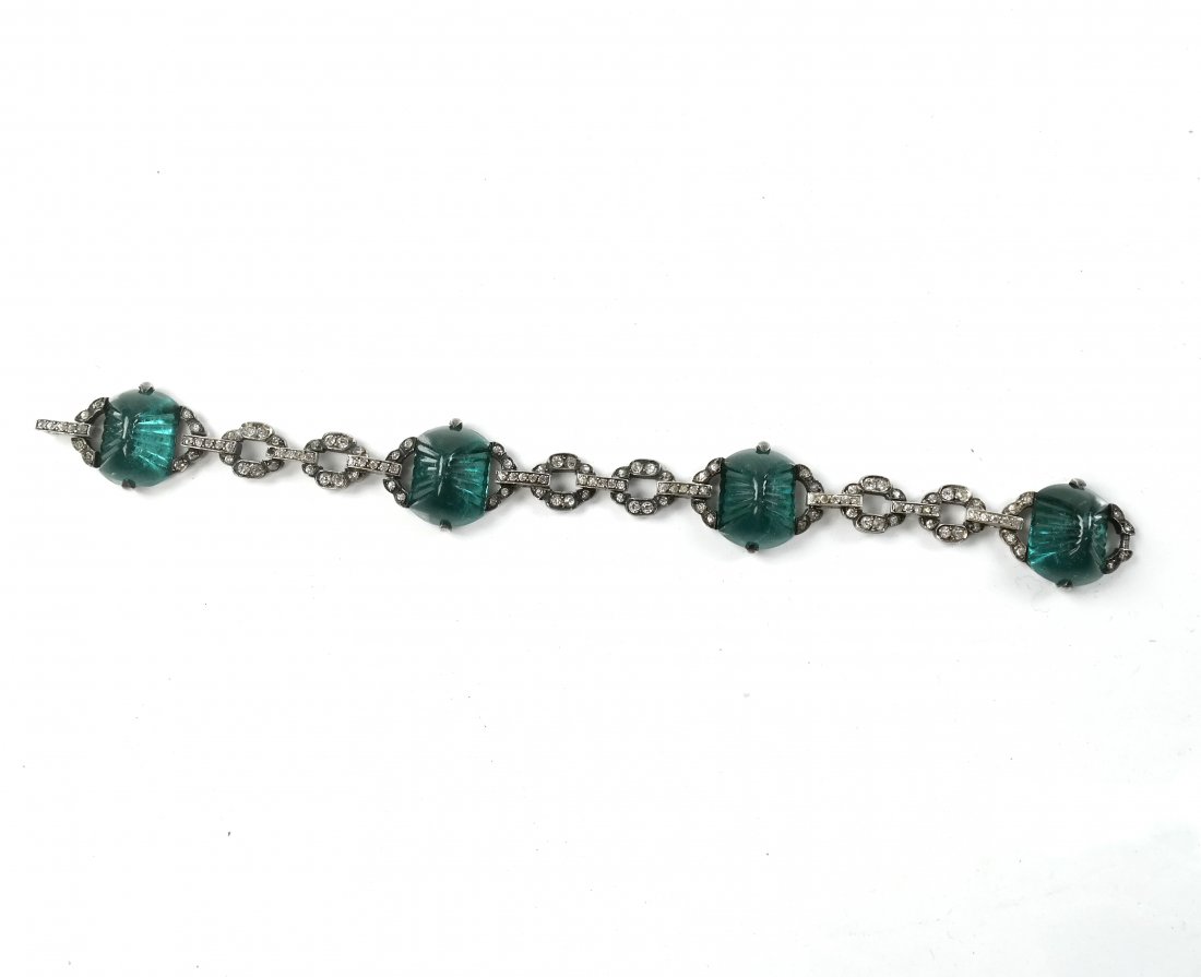 Edwardian 14K white gold chrysoprase and diamond bracelet. Oval stone mounted sections alternatingTremont Auctions4.6(313)$3007 days Left