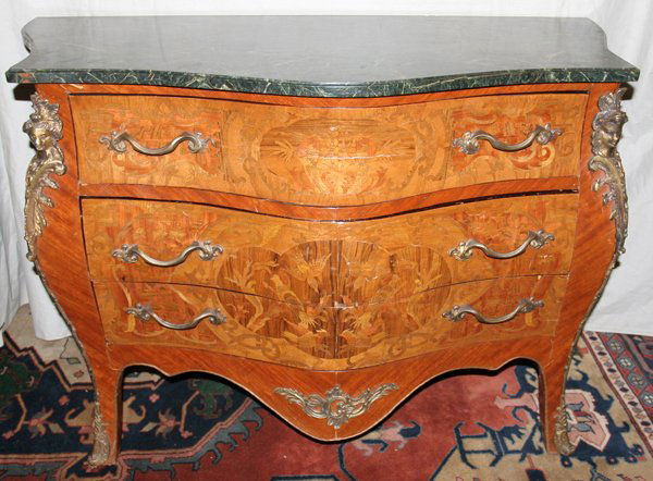 FRENCH BOMBE STYLE MARBLE TOP COMMODE, H 33"