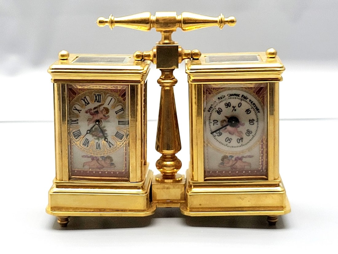 French brass and porcelain barometer clock