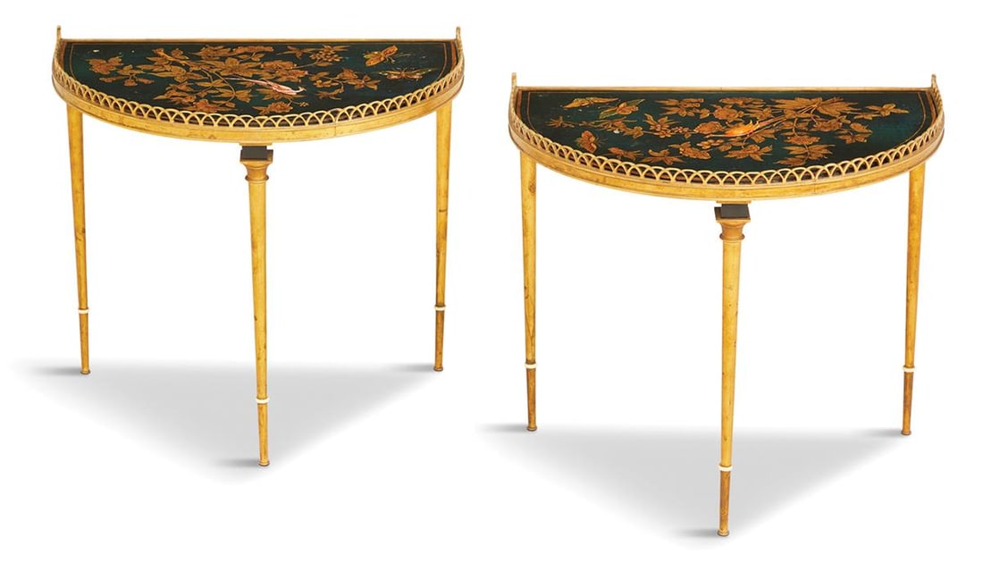 2PC LOT OF FURNITURE INCL. OSCAR BACH3 days LeftLOUIS XV STYLE FAUTEUIL AND INLAID PEMBROKE TABLE3 days LeftHollywood Regency Ebony Bouillote or End Tables, Manner Jansen Mirror Tops, PairA Pair of Neo-Pompeian Gilt Bronze and Red Onyx GuéridonsMar 13, 2026Set of Two Neapolitan 18th Century Painted Corner Consoles with Faux Porphyry TopsMar 21, 2026Pair of Louis XV Style Parquetry & Marquetry Marble Top Nightstands, late 19th c., H.- 29 1/4 in.,Mar 26, 2026Vintage Baker Campaign Style Brass & Mahogany Coffee Table Set of 25 days LeftSet of Two French Mahogany Lamp Tables with Brass Inlay AccentsMar 19, 2026Louis XV Style Gilt Bronze-Mounted Mahogany Occasional TableMar 12, 2026Y A CLOSELY MATCHED PAIR OF REGENCY ROSEWOOD AND PARCEL GILT CARD TABLES, CIRCA 1820Mar 24, 2026Louis XV Style Gilt Bronze Mounted Inlaid Tulipwood Occasional Table<Mar 12, 2026Set of Two Adolphus Mahogany Accent Tables with Brass Inlay and Satinwood BordersMar 15, 2026Maitland Smith Round Mahogany Brass Base Center TableY AN UNUSUAL PAIR OF CONTINENTAL ROSEWOOD, OLIVEWOOD AND MARQUETRY CONRER TABLES, PROBABLY ITALIANMar 24, 2026TWO PEDESTAL DRINKS TABLES2 days LeftFrench Louis XV Style Walnut and Bronze Marquetry Folding Game Table with Felt TopMar 14, 2026