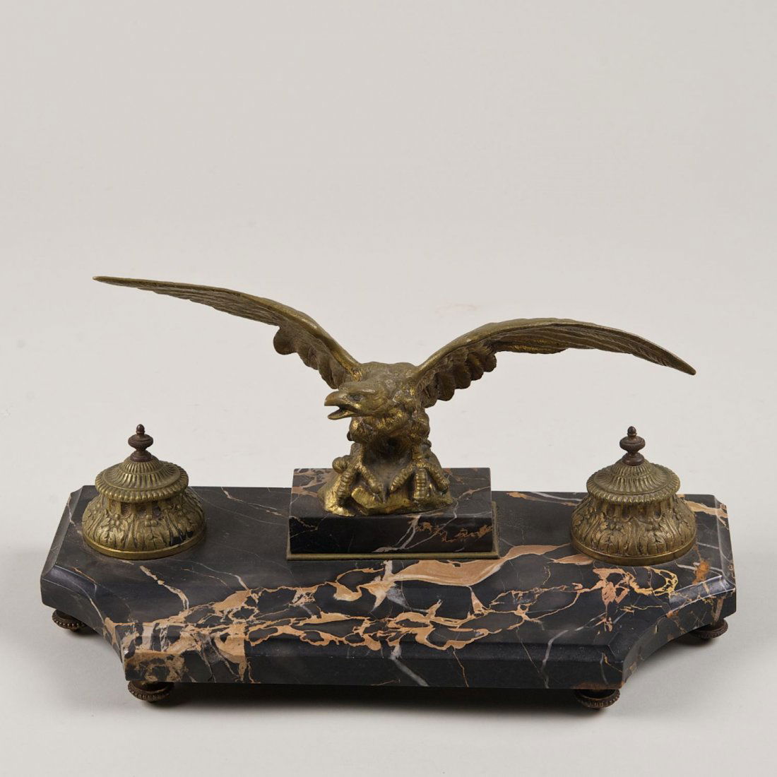 French bronze and marble ink stand signed Aubert