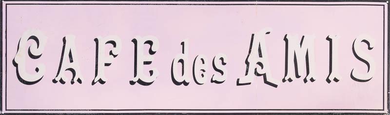 SoldFrench Cafe SignEnameled metal, "Cafe des Amis€, pink with black and white lettering, single-sided 17.5 x 59" We happily provide seamless shipping services on everything we sell. Please email us at shipping@vSee Sold Price
