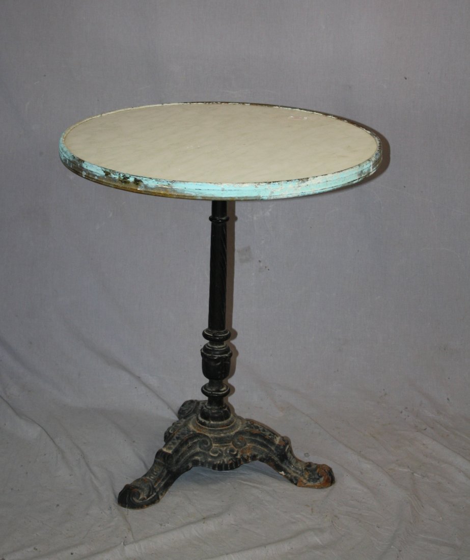 SoldFrench cast iron pedestal base cafe table with marble topFrench cast iron pedestal base cafe table with marble top. Early 20th century. 30"h x 23 3/4" diaSee Sold Price