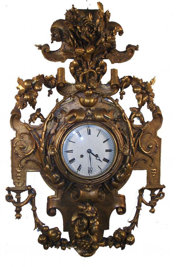 French carved and gilded wall clock