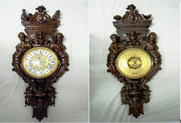 French Carved Barometer and Clock
