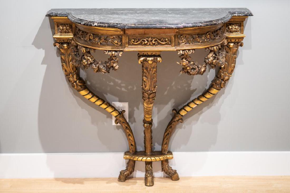 AN OPPULENT ITALIAN NINETEENTH CENTURY CARVED AND GILTWOOD CONSOLE TABLE HAVING AN OLD FELT COVEREDKamelot Auctions4.4(346)$2,0005 days Left