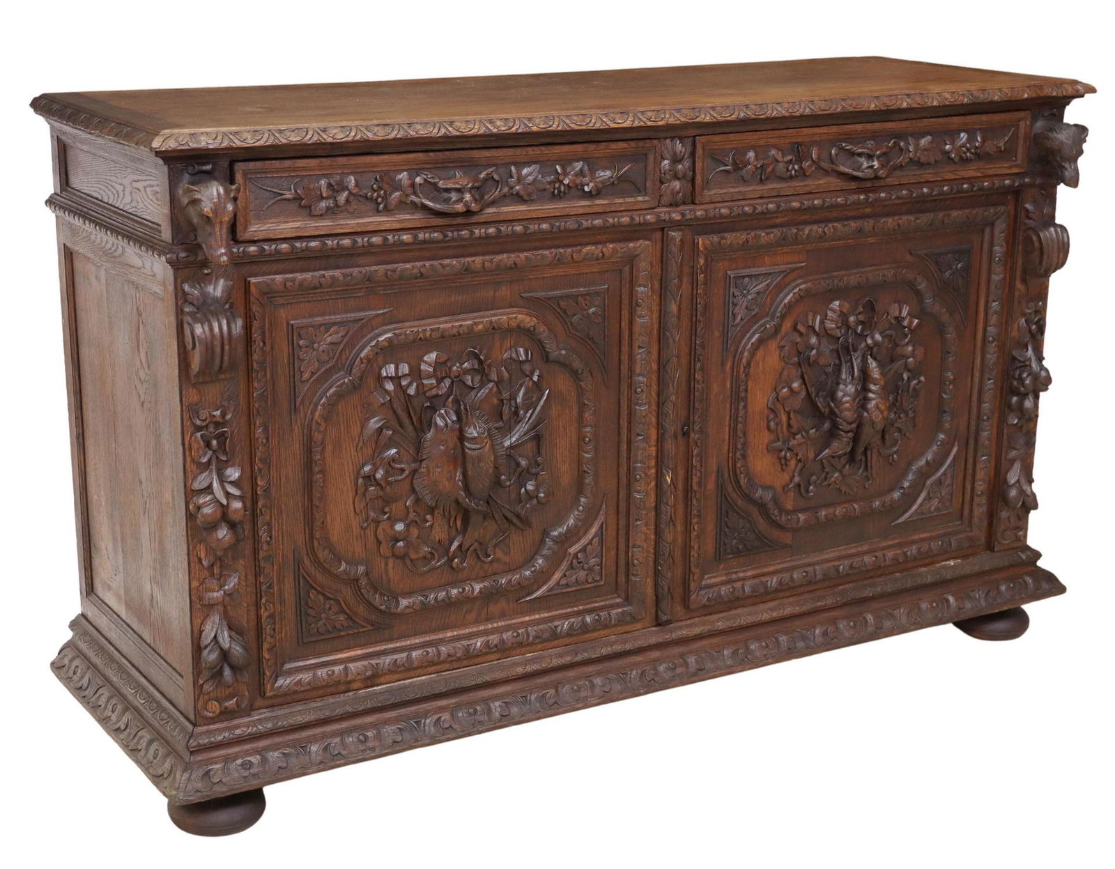 FRENCH CARVED OAK HUNT SIDEBOARD
